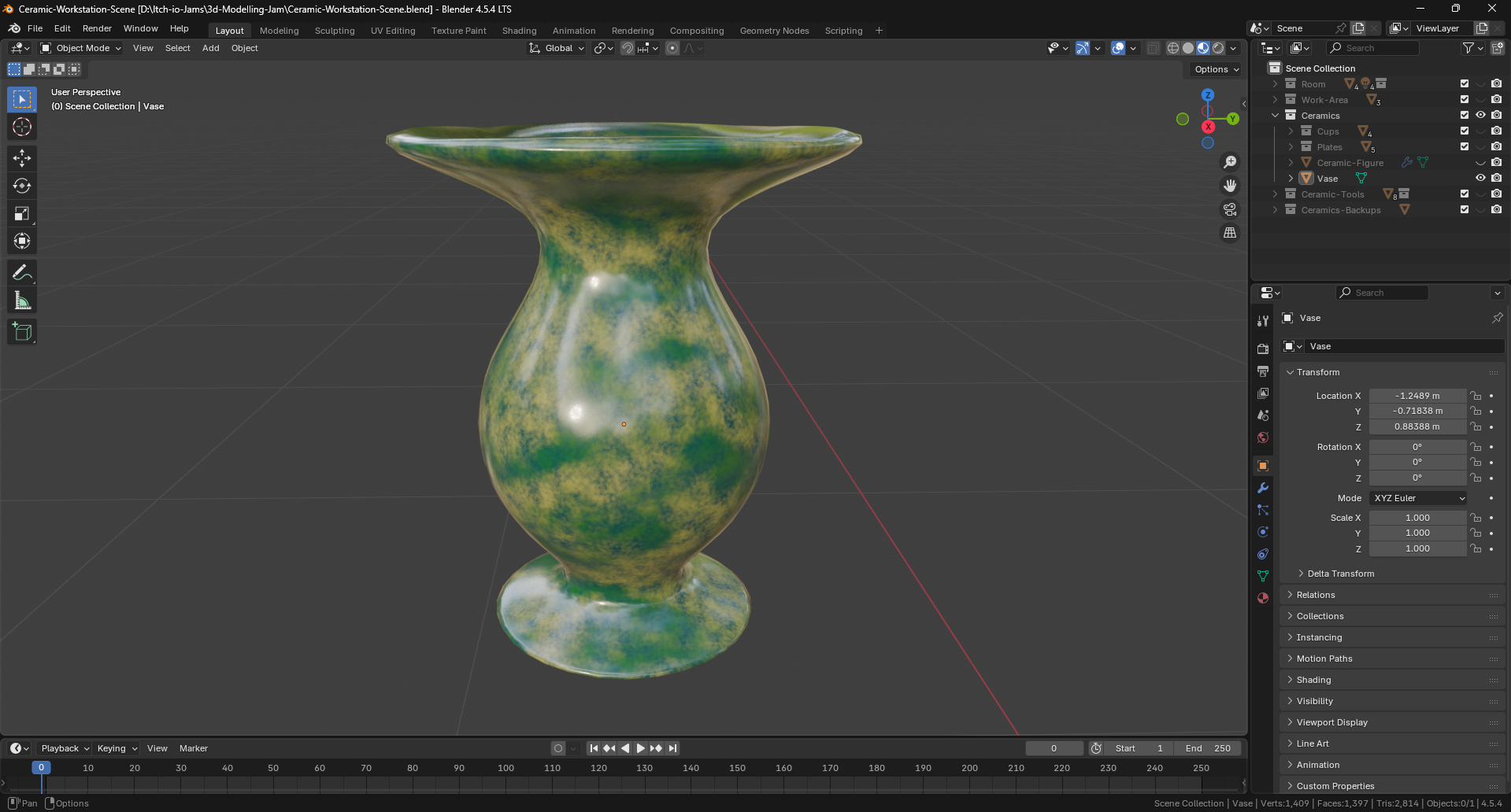 However, I didn't want to just create a single object and be done with it and that's why I decided to create a scene that somehow showcased the art of ceramic making. With that idea in mind I decided to create a room that an artisan could possibly use for his craft.